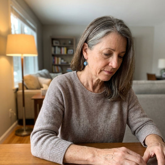 Fifteen years later, I still design every piece at my kitchen table (now in a slightly nicer apartment) with my rescue dog Luna at my feet. I test everything myself—if I can't wear it through Arizona summers, dishwashing, and yoga, it doesn't make the cut.